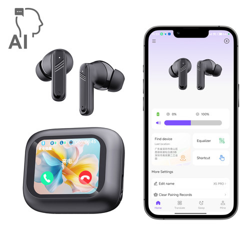 Smart Translation Bluetooth Earbuds — AI, Full Touchscreen, Noise-Cancelling